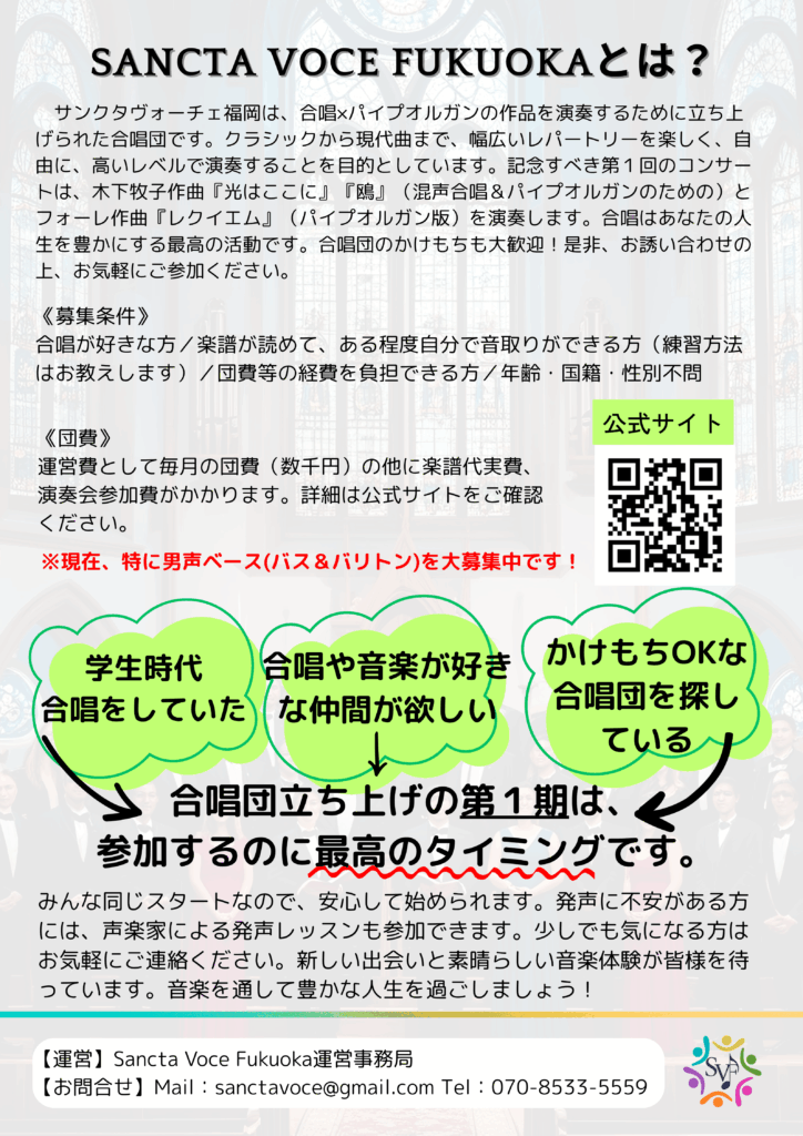 - Sancta voce Fukuoka第1期合唱団募集のチラシが完成